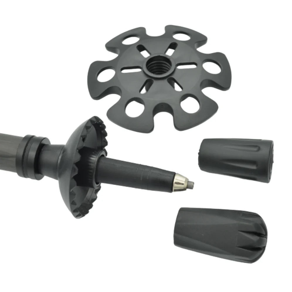 Trek – Use the CARBON+ as a lightweight, adjustable trekking pole with terrain-ready TrekTip™.  Including interchangeable baskets and a durable tip, it’s designed to handle everything from rocky ridgelines and muddy slopes to soft snow or loose scree — keeping you sure-footed wherever the hunt takes you.